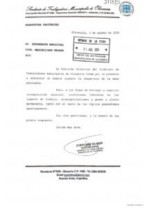 La Comisión Directiva del Sindicato de Trabajadores Municipales de Olavarría informa a sus afiliados y afiliadas que el jueves 1 de agosto presentó una solicitud
