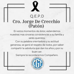 La Comisión Directiva del Sindicato de Trabajadores Municipales de Olavarría expresa su profundo dolor frente a la noticia del fallecimiento del dirigente Jorge De Crecchio,