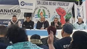 La comisión directiva del Sindicato de Trabajadores Municipales de Olavarría y miembros de la Asociación de Profesionales brindaron una conferencia de prensa para dar a