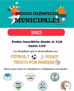 Ya está abierta la inscripción para los Juegos Olímpicos Municipales 2023. El evento será abierto para todos los trabajadores y trabajadoras municipales que deseen sumarse.