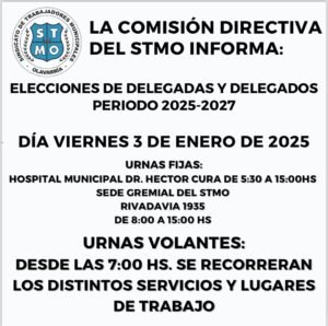 La Comisión Directiva del Sindicato de Trabajadores Municipales de Olavarría informa a sus afiliados y afiliadas que el día 3 de enero de 2025 se